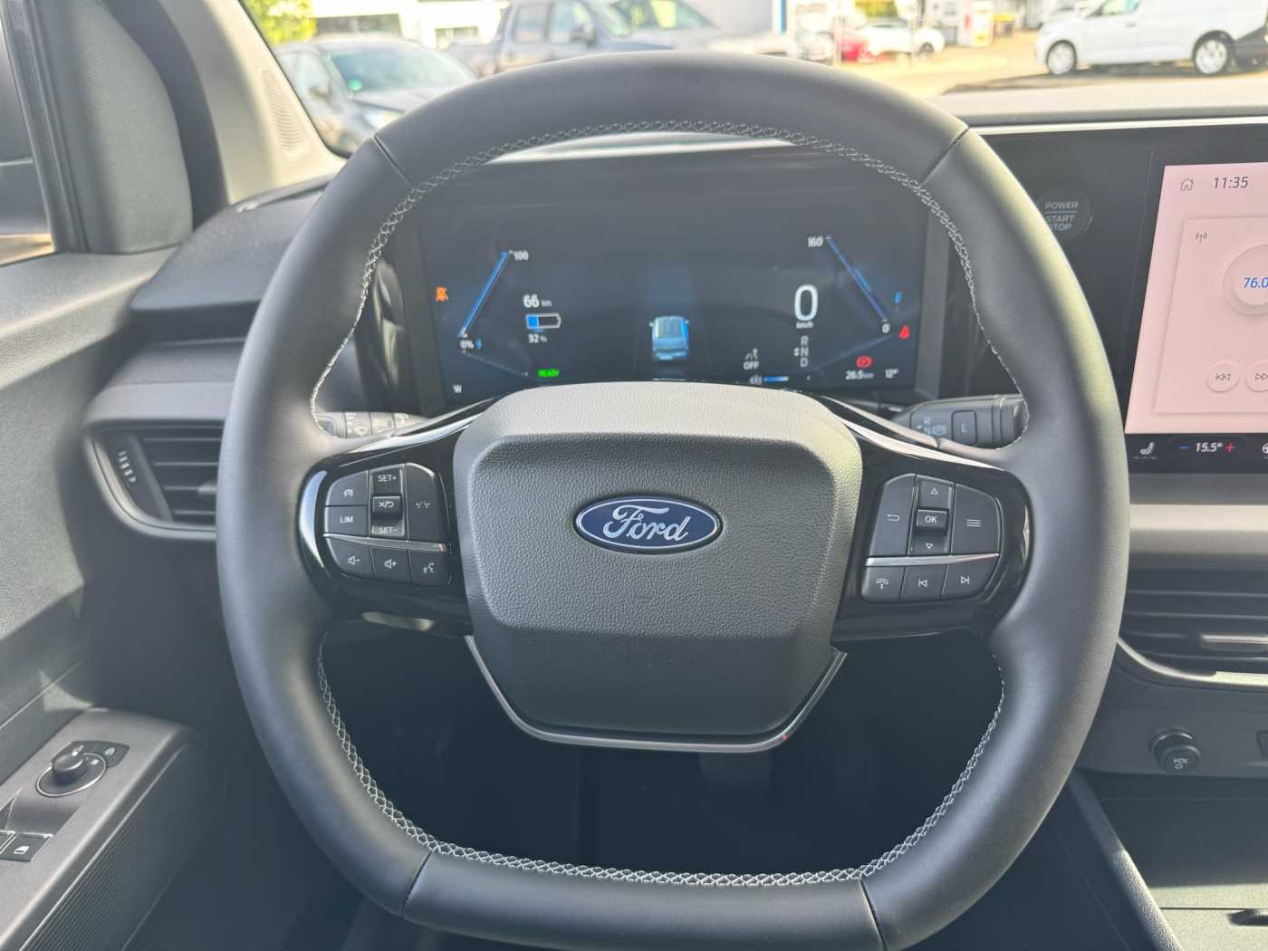 Ford Audiosystem SYNC4, kabellos Apple CarPlay/Android Auto, DAB+ Radio, Telefonvorbereitung Bluetooth und USB-Anschluss, FordPass Connect, Klimaautomatik, Geschwindigkeitsregelanlage (Tempomat), intelligenter Geschwindigkeitsbegrenzer, Verkehrsschild-Erkennungssystem, Pre-Collision Assist, Fahrspur-Assistent inkl. Fahrspurhalte Assistent, Fahrer/Beifahrer/Seiten/Kopf AIRBAGs, Rückfahrkamera, Park-Pilot-System hinten, Außenspiegel elektr. einstellbar u. beheizbar, Schiebetür rechts, Laderaumtrennwand mit Durchladeöffnung und mit Fenster, Beifahrersitz umlegbar, feste Heckscheibe, Doppelflügeltüren, Hartholz Laderaumboden, Laderaumleuchte LED, Fahrer- und Beifahrersitz beheizbar, Beifahrersitz falt-und versenkbar, Frontscheibe beheizbar, Lenkrad beheizbar, 44l Frunk, Anhängerkupplung, 16 Zoll Stahlfelgen mit Radzierblenden auf Sommerreifen
