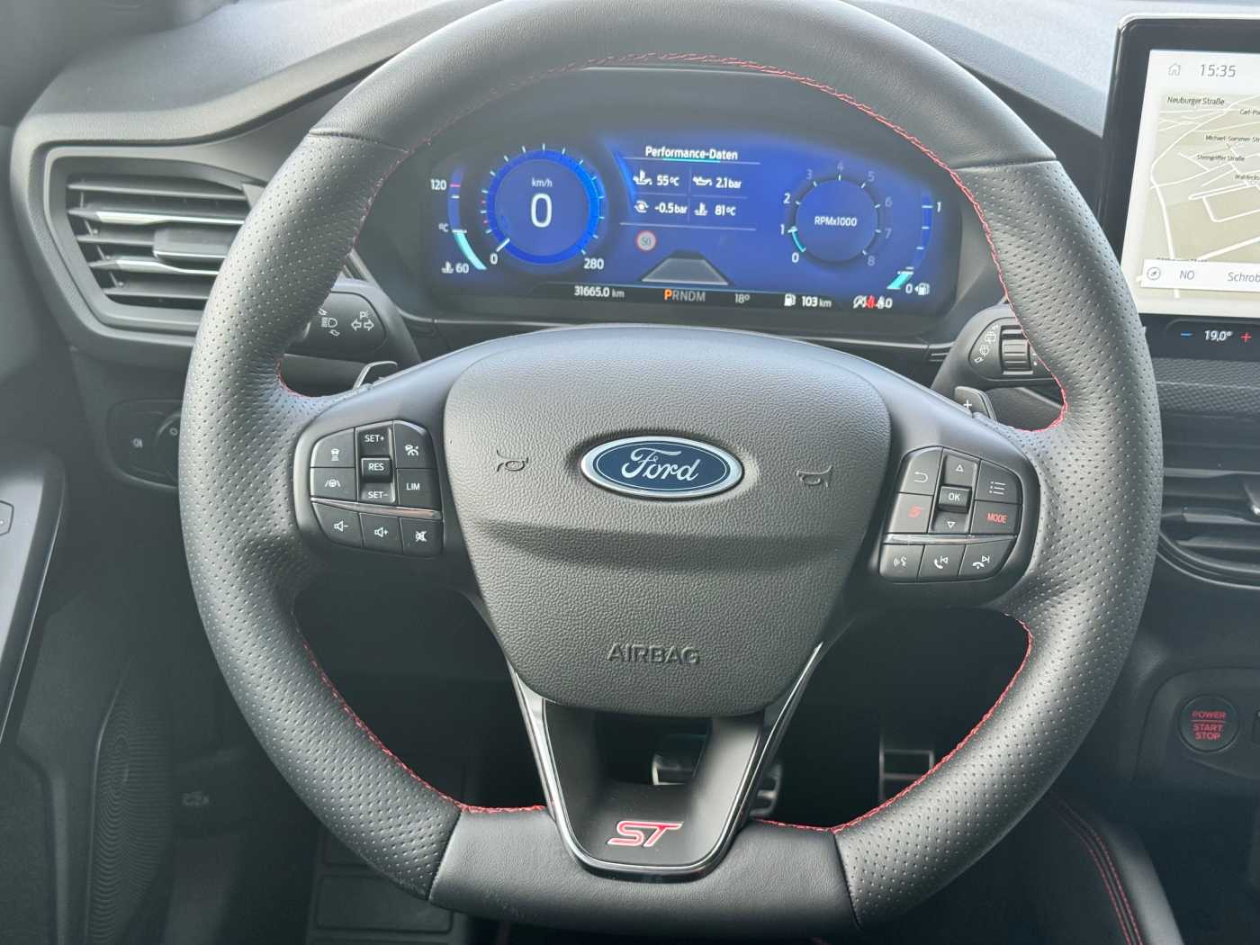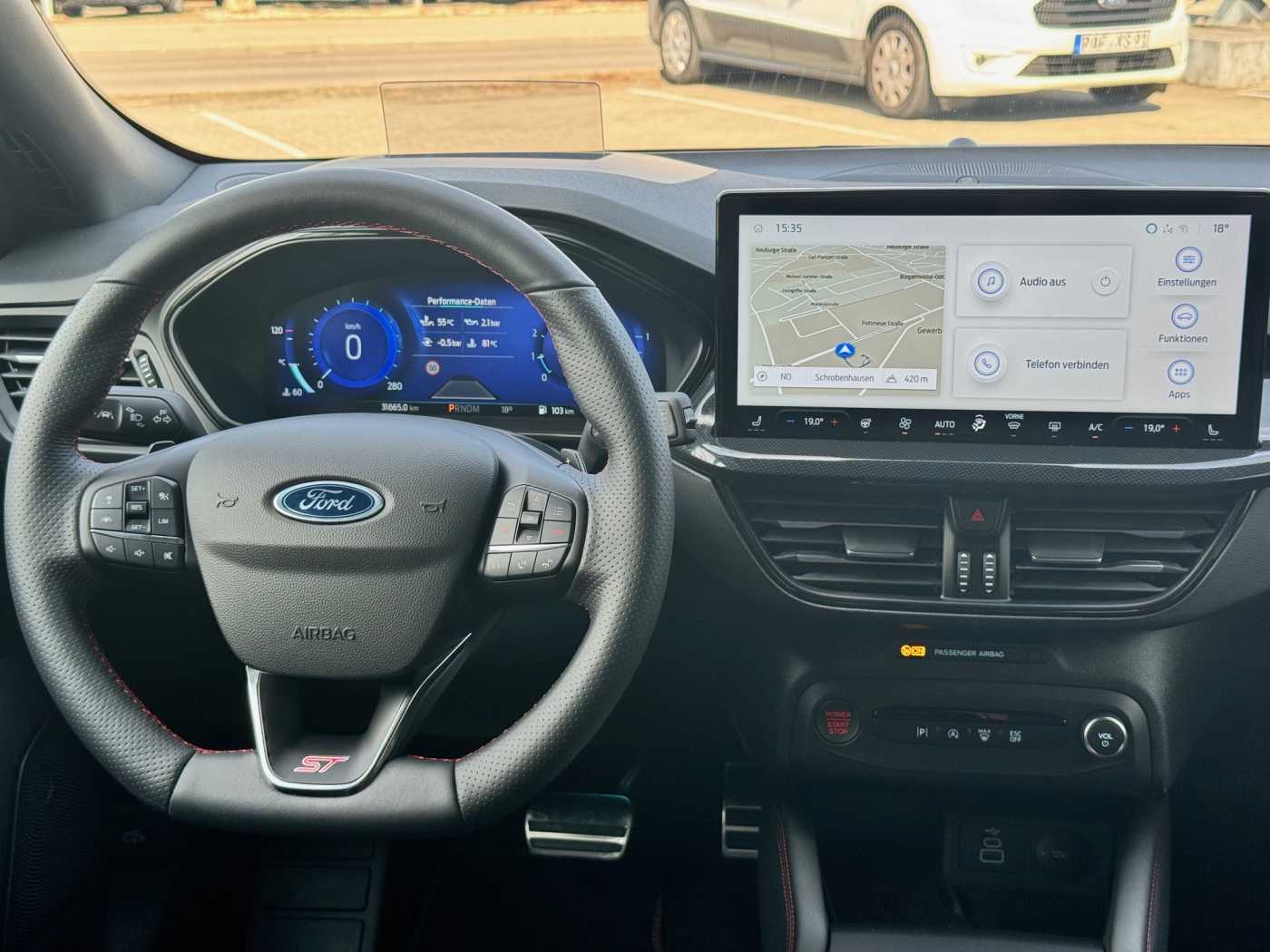 Audio-/Navigationssystem Ford SYNC 4, Telefonvorbereitung mit Bluetooth-/USB-Schnittstelle, kabellos Android Auto/Apple CarPlay, Premiumsoundsystem von Bang&Olufson, DAB+ Radio, induktive Ladestation, Head-up-Display, Digitale Instrumentententafel, adaptive Geschwindigkeitsregelanlage (ACC), intelligenter Geschwindigkeitsbegrenzer, Verkehrsschild-Erkennungssystem, Fahrspurpilot, Spurhalte-Assistent, Toter-Winkel-Assistent, Berganfahr-Assistent, Pre-/Post-Collission-System, Matrix-LED-Scheinwerfer, statisches LED-Abbiegelicht, blendfrei Fernlicht-Assistent, LED Tagfahrlicht, LED Rückleuchten, Scheinwerfer-Assistent mit Tag/Nachtsensor, Regensensor, 2-Zonen Klimaautomatik, Frontscheibe beheizbar, Lenkrad beheizbar, Ford Performance Sitze, 12-fach el. einstellbar vorne, Sitzheizung vorne, Rückfahrkamera mit Split View, aktiver Park-Assistent, Park-Pilot vorn + hinten, el. Heckklappe (Sensorgesteuert), KeyFree-System, el. Außenspiegel anklappbar/beheizbar, Heckscheiben getönt, Bremssättel Rot lackiert, Türkantenschutz, Notrad, 19“-Leichtmetallräder (5-Speichen, Y-Design) auf Sommerreifen