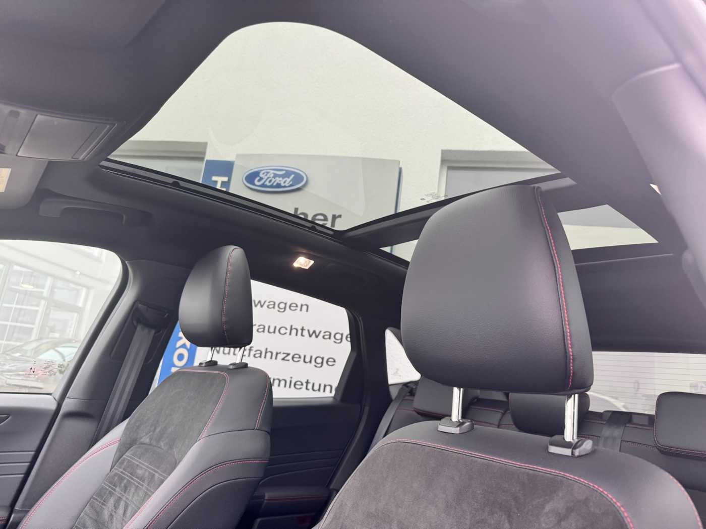 Ford Audio-Navigationssystem SYNC 3, Telefonvorbereitung mit Bluetooth-/USB-Schnittstelle, B&O Sound System, DAB/DAB+ Radio, Apple CarPlay/Android Auto, Head-Up-Display, Digitale Instrumententafel, induktive Ladestation, 2-Zonen Klimaautomatik, intelligente adaptive Geschwindigkeits-Regelanlage (iACC), intelligenter Geschwindigkeitsbegrenzer, Spurhalte-Assistent, Notbrems-Assistent, Pre-/Post-Collision-Asisstent, Toter-Winkel-Assistent, Regensensor, Rückfahrkamera mit Split View, Frontkamera mit Split View, aktiver Park-Assistent, Parkpilot-System vorne und hinten, adaptive LED-Scheinwerfer, blendfreier Fernlicht-Assistenten, dynamisches Kurvenlicht, Tagfahrlicht LED, Nebelscheinwerfer LED, Scheinwerfer-Assistent Tag-/Nachtsensor, Sitzheizung vorne, Lenkrad beheizbar, Frontscheibe beheizbar, Teilleder-Sportsitze, el. verstellbare Forntsitze, Lendenwirbelwirbelstütze, ISOFIX-Aufnahme für Kindersitze, Parkbremse elektisch, el. Panorama-Schiebedach, el. Heckklappe (sensorgesteuert), Ford KeyFree-System, abnehmbare Anhängerkupplung, Dachreling, Heckscheiben hinten getönt, 19 Zoll Leichtmetallräder auf Sommerreifen