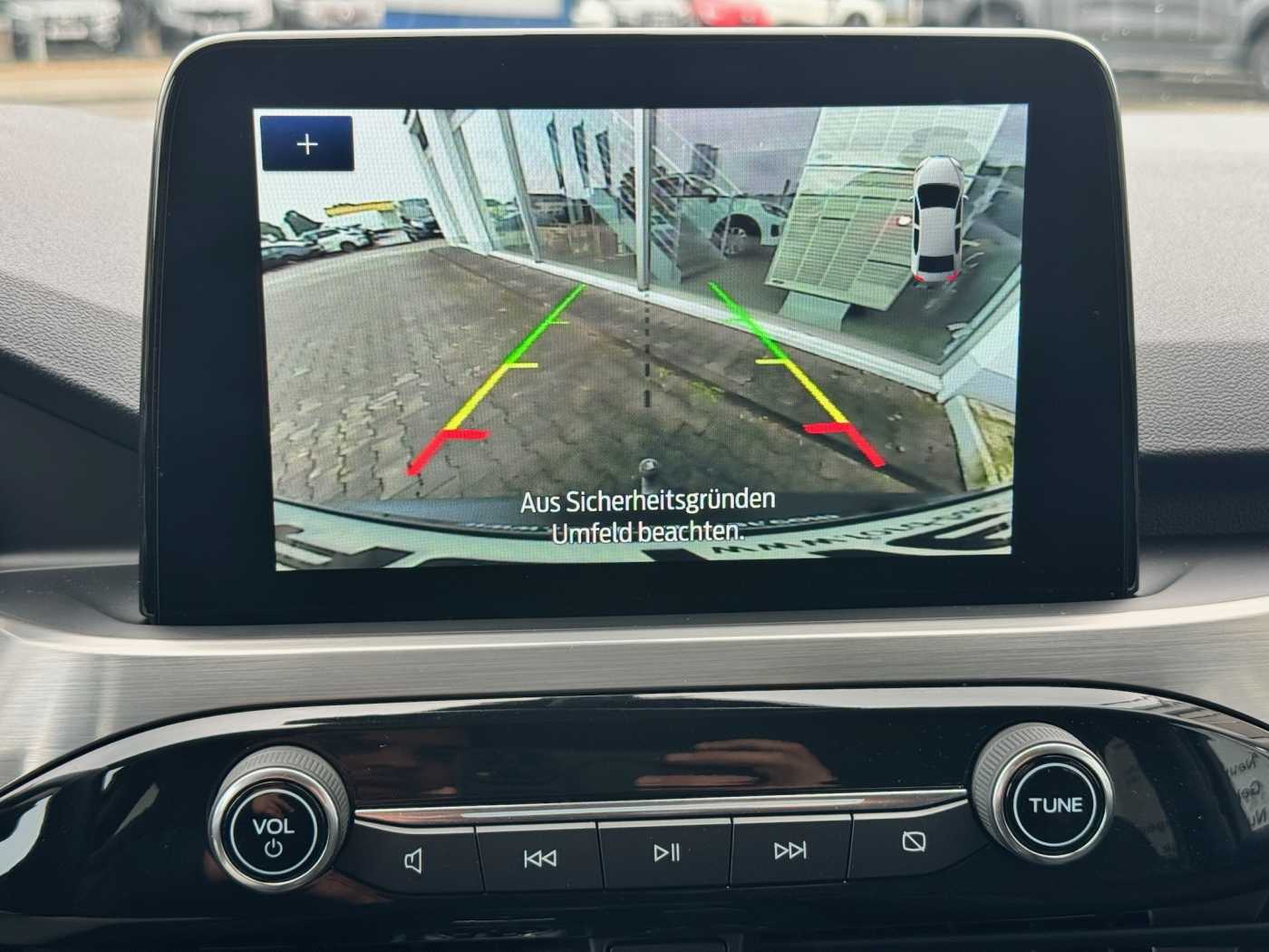 Ford Audio-Navigationssystem SYNC 3, Telefonvorbereitung mit Bluetooth-/USB-Schnittstelle, DAB/DAB+ Radio, Apple CarPlay/Android Auto, Digitale Instrumententafel, 2-Zonen Klimaautomatik, Geschwindigkeits-Regelanlage (Tempomat), Geschwindigkeitsbegrenzer, Spurhalte-Assistent, Notbrems-Assistent, Pre-/Post-Collision-Asisstent, Regensensor, Rückfahrkamera, Parkpilot-System vorne und hinten, Tagfahrlicht LED, Nebelscheinwerfer LED, Scheinwerfer-Assistent Tag-/Nachtsensor, Sitzheizung vorne, Lenkrad beheizbar, Frontscheibe beheizbar, Lendenwirbelwirbelstütze, el. Heckklappe, ISOFIX-Aufnahme für Kindersitze, Parkbremse elektisch, schwenkbare Anhängerkupplung, Heckscheiben getönt, Notrad, 17 Zoll Leichtmetallräder auf Sommerreifen